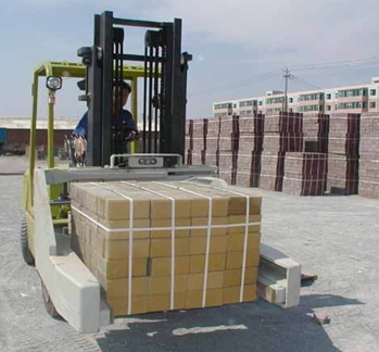 南京磚塊夾可安全地夾持各種石料和磚塊單元,適用于地磚、混凝土預制件、石料、石墨等行業的無托盤搬運和堆垛作業。
