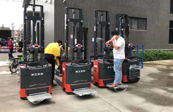 除此之外還有簡易型的電動堆高車,人是跟著電動堆高車行走的,電動堆高車不帶踏板,珍重堆高車因為電瓶較小,工作時間較短。
